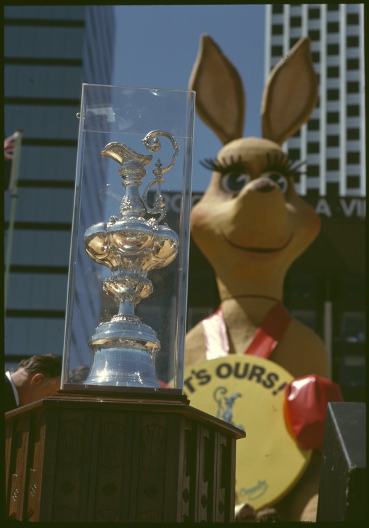 146952PD: America's Cup trophy on The Esplanade during the Australia II Day celebrations, Perth, 30 October 1983