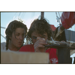 147049PD: Cleaning pearl shells on the deck of the lugger DMcD off Broome, ca.1995