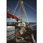 147047PD: The crew work on the deck of the lugger DMcD off Broome, ca.1995