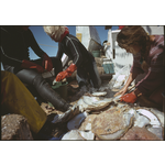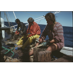 147046PD: Cleaning open pearl shells on the deck of the lugger DMcD off Broome, ca.1995