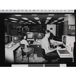 BA2817/924: Computer operators Kathy Kennedy and Colin Disley at the control console in the new computer room at Hamersley House, Perth, 1981