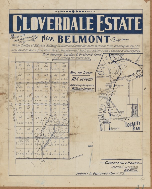 Formerly 102C/37. An advertisement for Cloverdale Estate, 58 choice lots for sale by John Guilfoyle appears in the West Australian 2 August 1906, p. 2.
