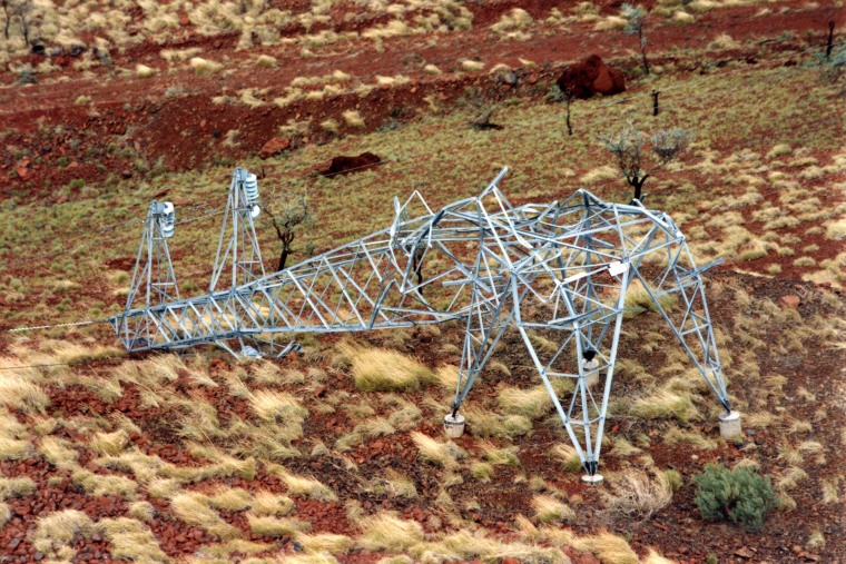 BA2817/1863: One of the two dozen power pylons destroyed by Cyclone Olivia on 10 April 1996