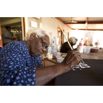 BA2840/274: : Lena Nyadbi (left), Jodie Hall (right) with Phyllis Ningarmara in the background painting their Barramundi Dreaming. These women are the only three owners of the Barramundi Dreaming. Waringarri Aboriginal Arts Centre, Kununurra, 5 September