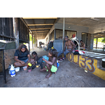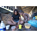 BA2840/374: Bernadette Meeway sorting out black bream fish for tea at her mother Jodie Hall's home in Mirima, Kununurra, 3 September 2017