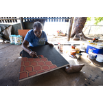 BA2840/368: Desiree Simon mixing ochre with wood glue ready for painting, Mirima, Kununurra, 19 August 2017