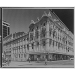 A sign for Her Majesty's Hotel can clearly be seen above the corner door. While SKS made this negative ca.1983 they have labelled it a 'copyneg' so that the photograph may have been taken earlier, probably 1978 when a major renovation of the building taking two years was started.