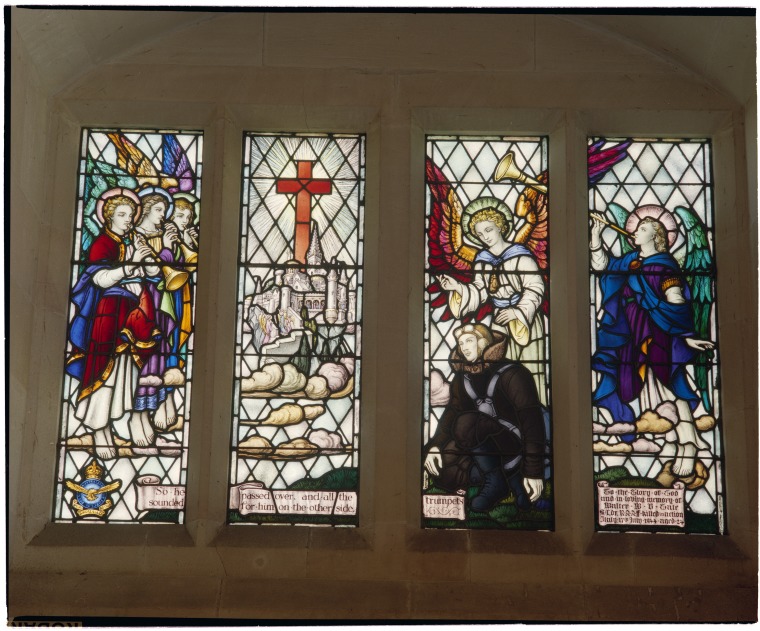 384171PD: : Stained glass window in the Chapel of St Mary and St George, Guildford Grammar School, September 1991