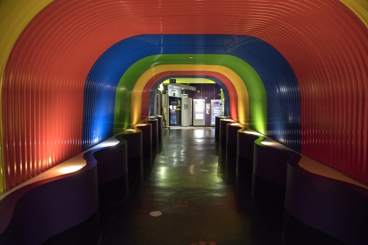 BA2493/1588: Rainbow Tunnel to the entrance of Megazone, Level 7, Patient Services Building, Princess Margaret Hospital for Children, Subiaco, 27 April 2018