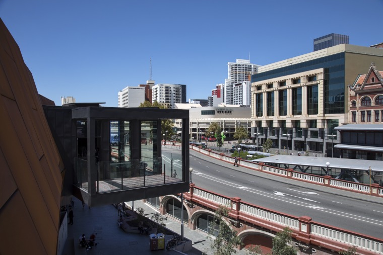 BA2493/1675: Yagan Square on opening day, 3 March 2018. The protruding viewing deck with views across the Horseshoe Bridge and east down Wellington Street