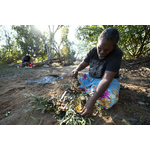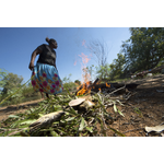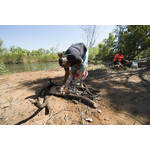 BA2840/565: Jodie Hall preparing the fire for cooking at Fords Beach, Kununurra, 18 April 2018
