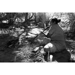 BA2840/577: An infrared photograph of Jodie Hall cooking a turtle at Fords Beach, Kununurra, 18 April 2018