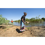 BA2840/566: Jodie Hall unhooking a turtle she has caught at Fords Beach, Kununurra, 18 April 2018