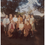 Title devised by cataloguer. Caption provided by donor: Back Row – Leila Williams, Phil Devenish, Dorothy Devenish, Marjorie Williams (nee James) [grad 1961], Ruth Chapman, Ruth Allen, Eris Blunt (later Way), Esther Milnes. Front Row – Syd Williams, Gordon Chapman, Unknown child, Don Milnes