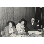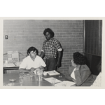BA863/91: Doris Pilkington, Marjorie Coffin and unidentified man at a Department of Aboriginal Affairs meeting in progress, possibly at their Geraldton offices, Western Australia, 1976?