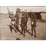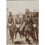 3771B/4: Five Aboriginal Australian men in body paint with shields and spears, possibly Njamal people on Corunna Downs Station, Western Australia, ca. 1930?