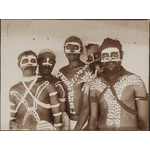 3771B/10: Five Aboriginal Australian men in body paint, possibly Njamal people on Corunna Downs Station, Western Australia, ca. 1930?