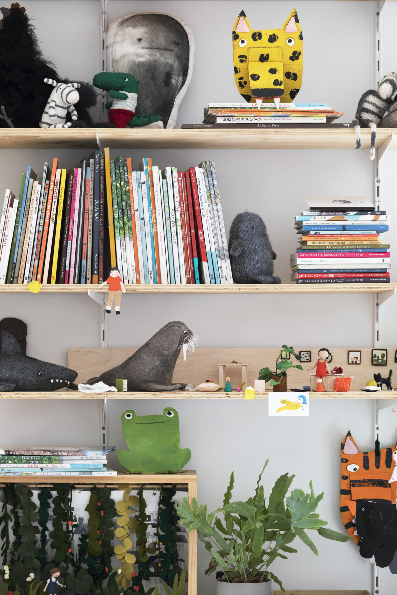 PWC/281/8/4D: Photograph. Anna's shelves with a cardboard frog and the Florettes diorama