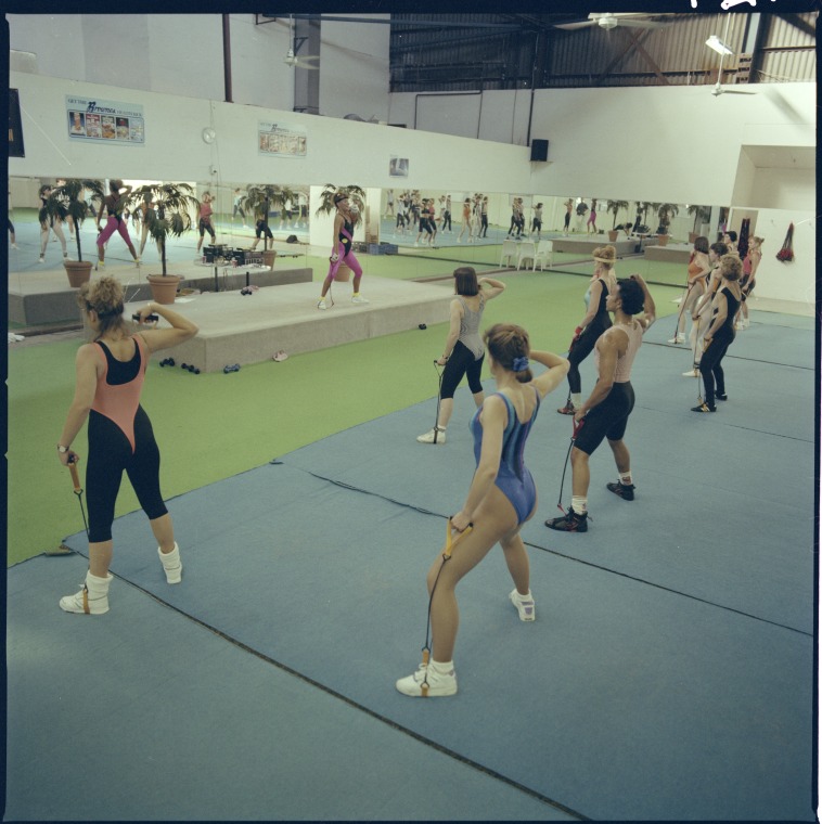 390695PD: Exercise class at Lords Indoor Sports and Health Centre, Subiaco, 1989