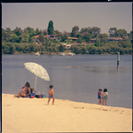 Photographs of the reserve showing the public toilets and the kiosk The Point Cafe, a family on the beach. Also shows views from the point to the Canning Bridge and to Mt Henry Bridge.