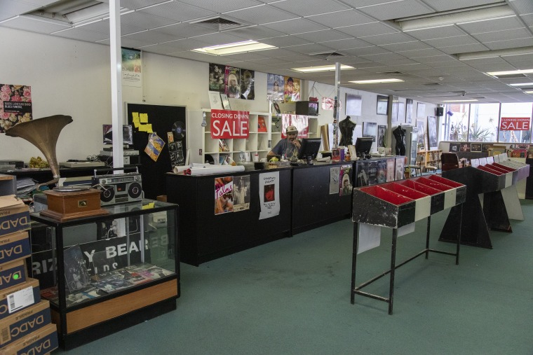 BA2493/2223: Manager Andrew de Lang behind the counter of 78 Records, 16 February 2019