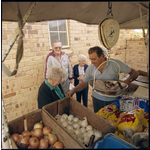 390849PD: An itinerant greengrocer serves residents of St Ives Melville Retirement Village, 5 June 1990