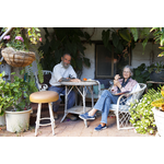 BA2840/1568: Tim and Margaret Hargreaves in the courtyard of their home in Denham, August 2019