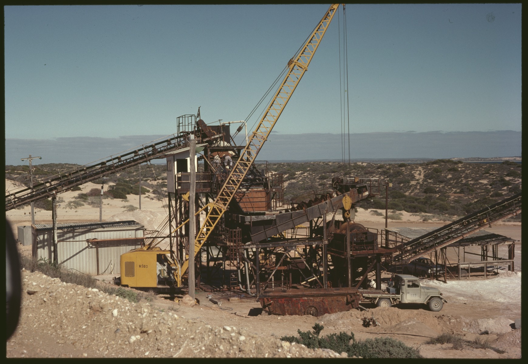 196334PD: Installing vibrating screen at the salt washery, Useless Loop, Western Australia, August 1980.