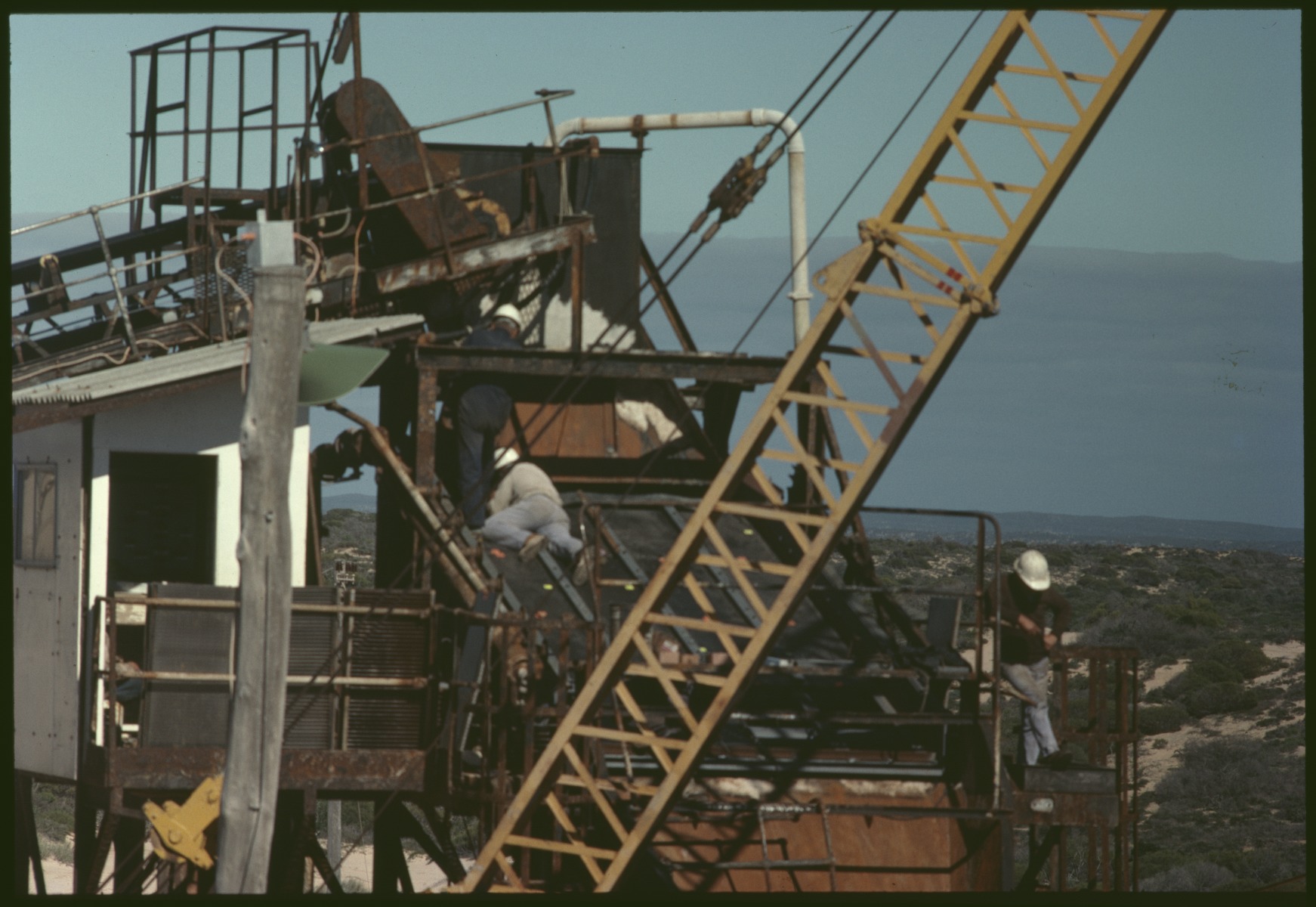 196335PD: Installing vibrating screen at the salt washery, Useless Loop, Western Australia, August 1980.