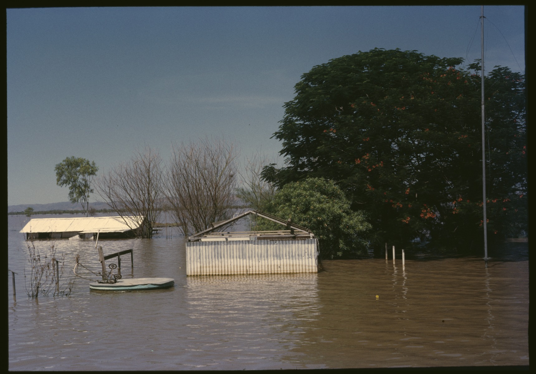 196239PD: Remains of the Argyle Down homestead submerged by Lake Argyle, Western Australia, January 1972.