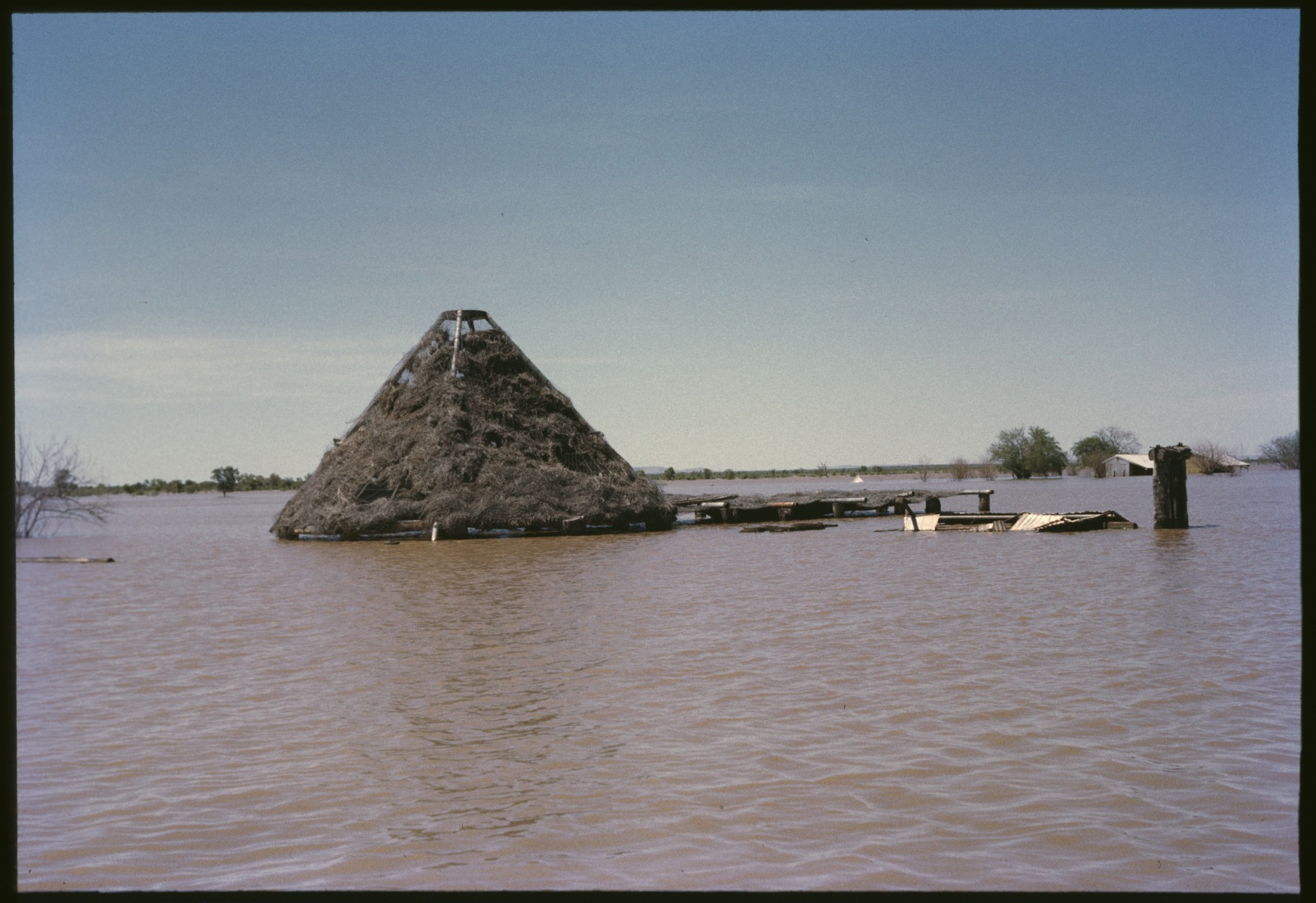 196242PD: Remains of the Argyle Down homestead submerged by Lake Argyle, Western Australia, January 1972.