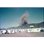 198151PD: The first Hamersley Iron blast at Paraburdoo, viewed across the construction camp, 1970