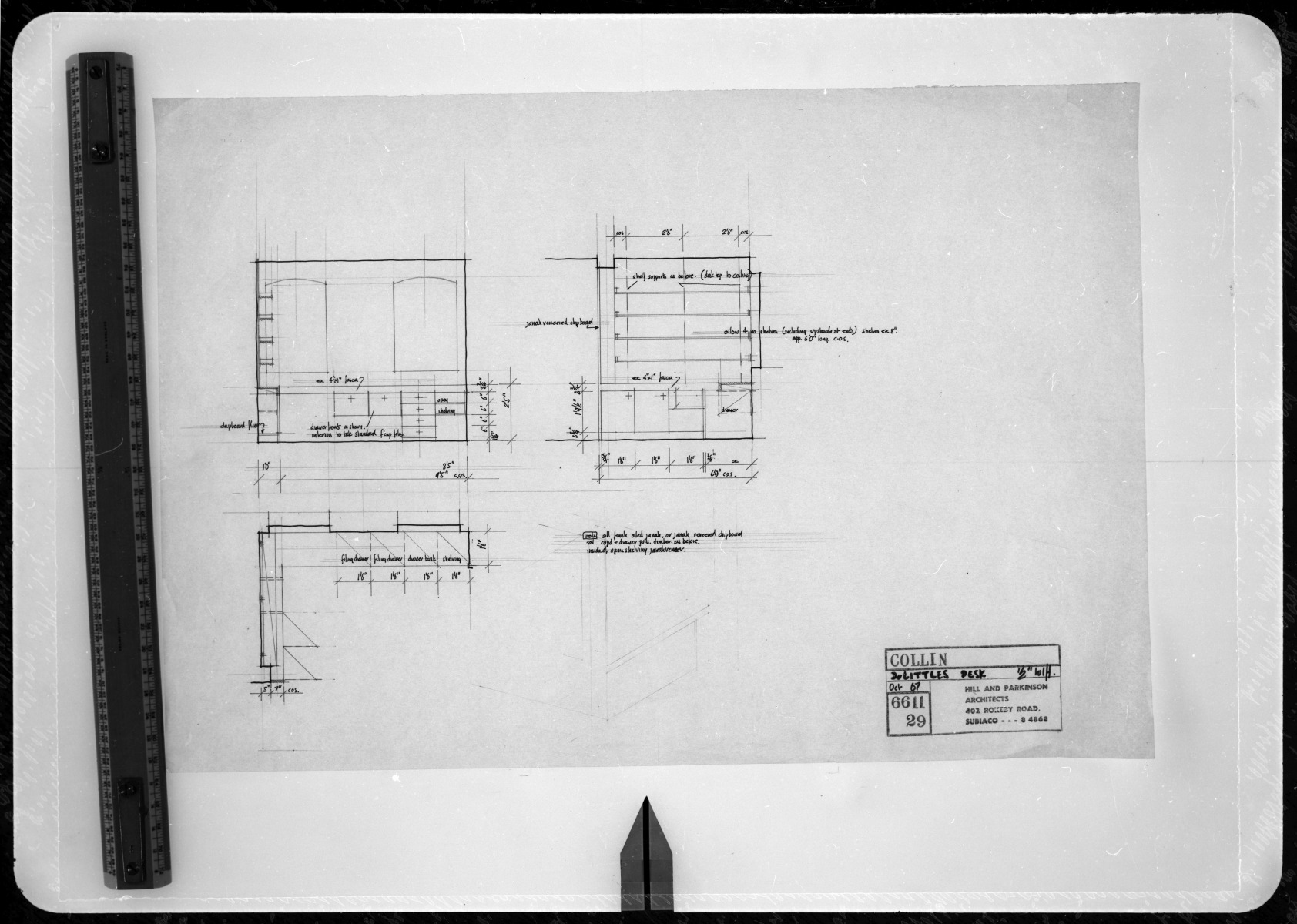 Photographs of the original plans drawn up for the house at Lot 38 (postal address 76) Hobbs Avenue, Dalkeith by architects Hill and Parkinson for Dr Robert Collin and his wife Dorothy and Dr Audrey Little. The Collin family and Dr Audrey Little are all living at this address in the 1968 Australian Electoral Roll. Audrey Little was director of the University of Western Australia's Child Study Centre, wrote five books on child psychology, established an exceptional children's program, and was legally blind. Dr Robert Collin was a lecturer in public health at UWA.