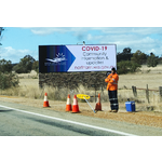 BA2840/1684: Electronic signs near the entrance to Coolgardie warn of COVID-19 travel restrictions, 21 April 2020