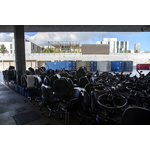 Photographer's note: Fiona Stanley Hospital changes visiting regulations and enforces social distancing and sanitising rules. It sets up a COVID Command Centre (the photograph shows Project Manager of South Metropolitan Health Service's COVID-19 Command Centre set up at FSH, Sarah Hobson) as well as reviewing the readiness of the Emergency Operations Centre. Changes are implemented to accommodate a possible large number of infectious patients. Additionally, anticipating an increased number of deaths, a morturary overflow was established using 4 refrigerated sea containers located outside the loading ramp to the mortuary providing for an extra 200 bodies. Entrance to Emergency is altered so that any patient exhibiting symptoms of respiratory discomfort is isolated and tested for COVID-19. A COVID-19 testing clinic is set up in buildings separate to the main hospital. COVID-19 is caused by a COVID or coronavirus.