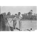 Father John Jobst And An Aboriginal Australian Man Looking At A Humpy Constructed From Corrugated Iron, Beagle Bay Mission, Western Australia.