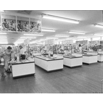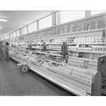 Photographs of the exterior and interior of the supermarket. Includes the meat section where customers are served by a butcher who weighs and wraps the meat (no pre-packaged meat). The dairy fridges and freezers. The checkouts with shelves of cigarettes above. One of the grocery aisles. Address from the 1979 Perth Telephone Directory. This building is now part of the Warwick Grove shopping centre.
