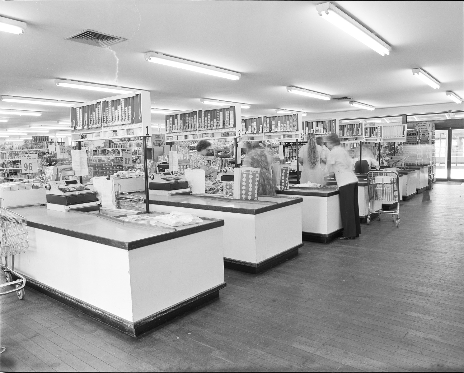 277080PD: Checkouts in Charlie Carters supermarket, Duncraig, December 1979