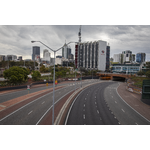 No traffic on the Graham Farmer Freeway, east entry to the tunnel, Saturday 4:30pm. Due to the COVID-19 lockdown, with businesses temporarily closed and many other employees working from home, traffic activity in and around the city was much reduced from usual activity.