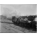 383046PD: WAGR H class No.18, owned by Public Works Dept, on stone train for Bunbury breakwater, Bunbury, May 1951.
