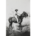 BA2947/766: Jerry Andrew riding a horse broken by Sam Lovell, Napier Downs, Western Australia, 1957.