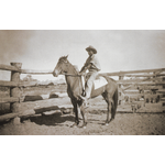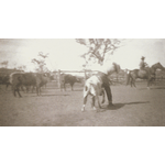 BA2947/770: Sam Lovell riding on a bronco horse Rover, timing yard, Napier Downs, Western Australia, 1956.