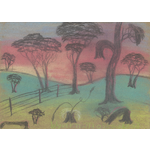 BA1821/37: "The Hillside" by Wyvern Moses aged 13 of Carrolup Settlement School, part of a series of pastel drawings by Aboriginal children from the collection of Doreen Trainor, 1940s?