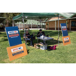 BA2493/3311: At Northam Primary School polling station 'Yes' campaigners (L-R) Ratna Knight, Oliver Fox, Dr Marie Fox, Dawn Lamperd, Anika Dent, 14 October 2023
