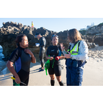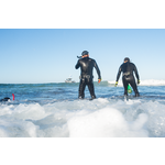 BA3370/281: Two people stand at the ready, well equipped with wetsuits to protect against the sharp reef and the water which is starting to cool down, April 2021.